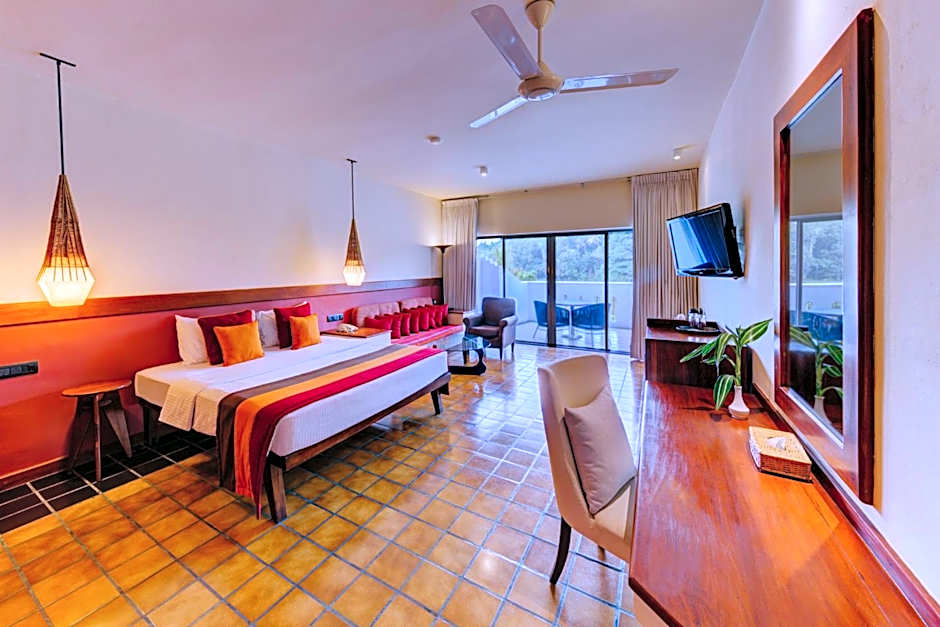 Deluxe includes a queen-size bed 150-154 width plus balcony, terrace, cable tv, hairdryer, tea and coffee making facilities , safe, and slippers and is Wheelchair-accessible.